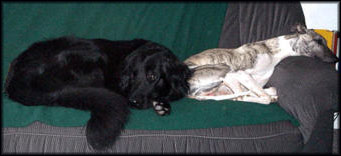 | Hovawarte sind spätreif, d.h. erst mit 3-4 Jahren sowohl körperlich wie geistig ausgereift. Bis dahin durchlaufen diese Hunde eine Reihe von teils unsicheren, teils aufmüpfigen Phasen, denen der Besitzer mit Gelassenheit begegnen sollte. | ![]() "Sofawart"