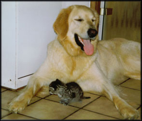 | Diese Eigenschaften gilt es frühzeitig durch eine korrekte Sozialisierung in die richtigen Bahnen zu lenken. Besonderer Wert ist hierbei auch auf eine gute Sozialisation mit Artgenossen, Kindern und auch anderen Tieren zu legen, nur so kann ein Hovawart auch als ausgewachsener Hund die Freiheiten geniessen, die ein Hundeleben nun mal lebenswert machen. Ein unerzogener, unausgelasteter, schlecht sozialisierter Hovawart ist eine Plage und eine Gefahr für seine Umwelt! | ![]() "Katzenwart" |